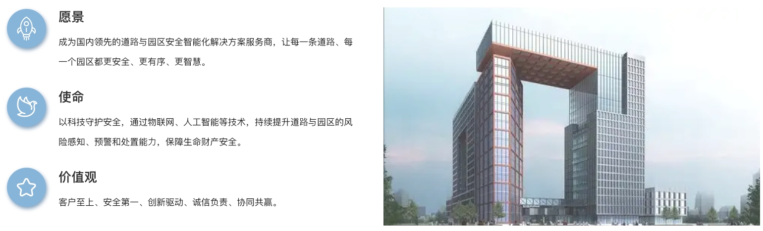 公司主营业务:道路安全(地面、边坡、桥梁、隧道、管网、环境、气象等)领域的巡检、监测、检测、智能应急装备等产品销售及服务。为城市、高速、乡镇、园区道路的相关政府机构、 道路的建设、运维、管养单位、提供道路运管服务、道路安全巡查、检测、监测、应急装备服务等,并实现智能化巡检监、运管服(预警、评估、处置、应急)等专业的一体化道路安全服务。